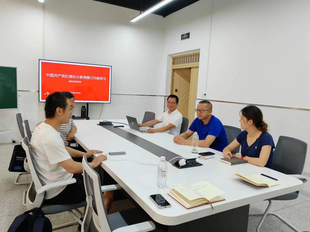 根据学校学院党纪学习教育安排,2024年7月4日上午,beat365英国官方网站自动化系党支部在系部会议室开展了党纪学习教育专题会议,自动化系党支部全体党员教师参加会议,会议由支部书记靳引利主持。