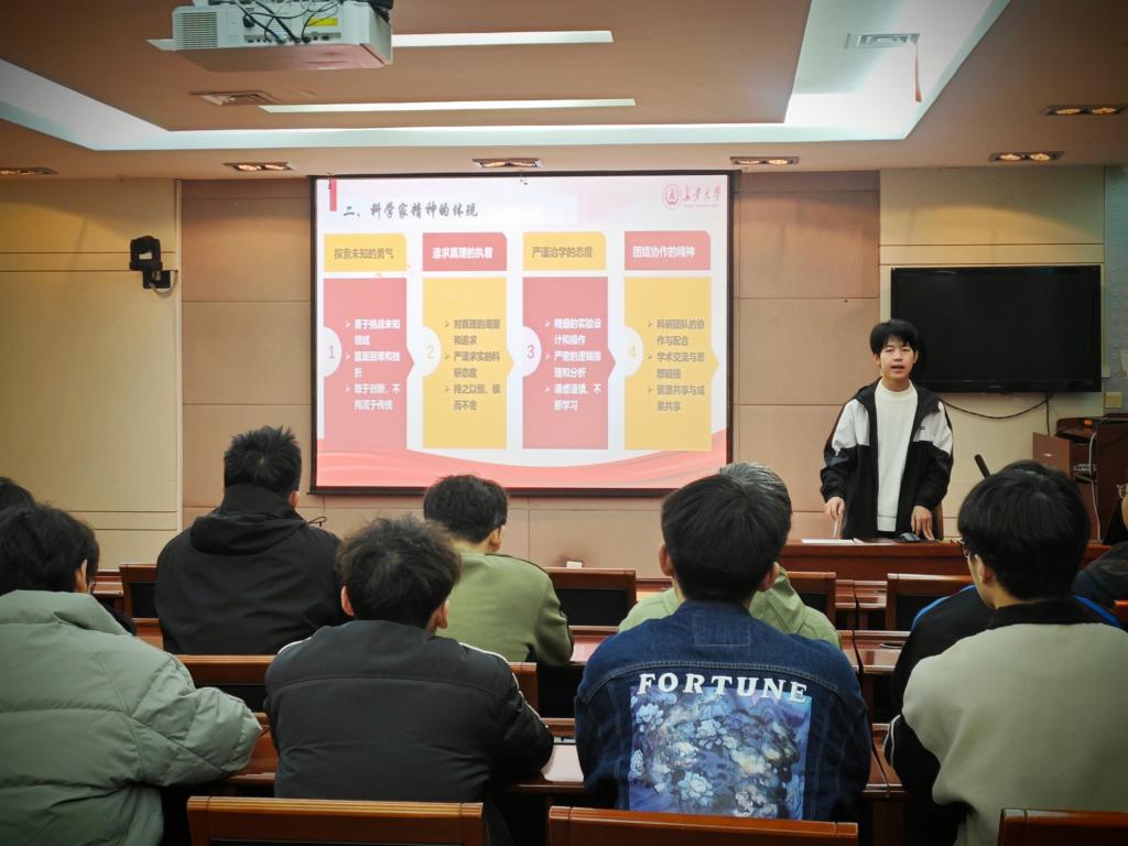 为深入学习贯彻习近平新时代中国特色社会主义思想和党的二十届三中全会精神,大力弘扬科学家精神,涵养优良学风。beat365英国官方网站2024级研究生第一党支部于11月15日下午在南校区北院交流中心第一会议室开展“弘扬科学家精神,争做新时代追梦人”主题党日活动。研究生辅导员王佩佩及全体党员参加活动,活动由党支部书记张兴浩主持。