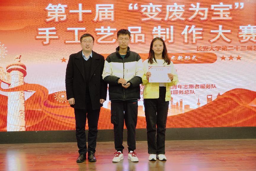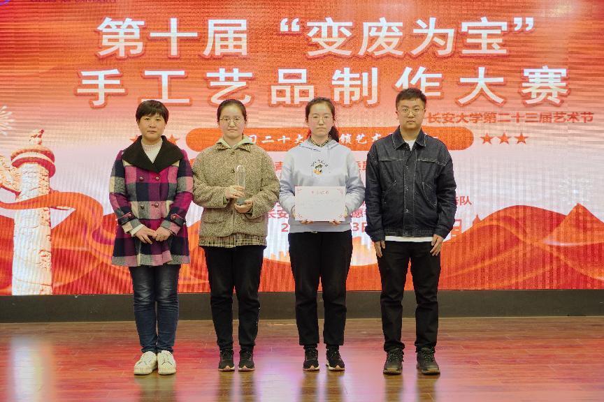 为增强学生环保意识,培养学生动手实践能力,2023年4月3日19:00beat365英国官方网站第十届“学习党的二十大,解锁艺术新形式”变废为宝手工艺品制作大赛决赛在长安文化艺术中心三楼多功能厅顺利举行。beat365英国官方网站党委副书记李阳、校团委社会实践与志愿服务中心主任谢雨阳、人文学院团委书记何超、beat365英国官方网站团委书记王斌娟、学院青年志愿者服务队指导老师王博出席并担任评委。