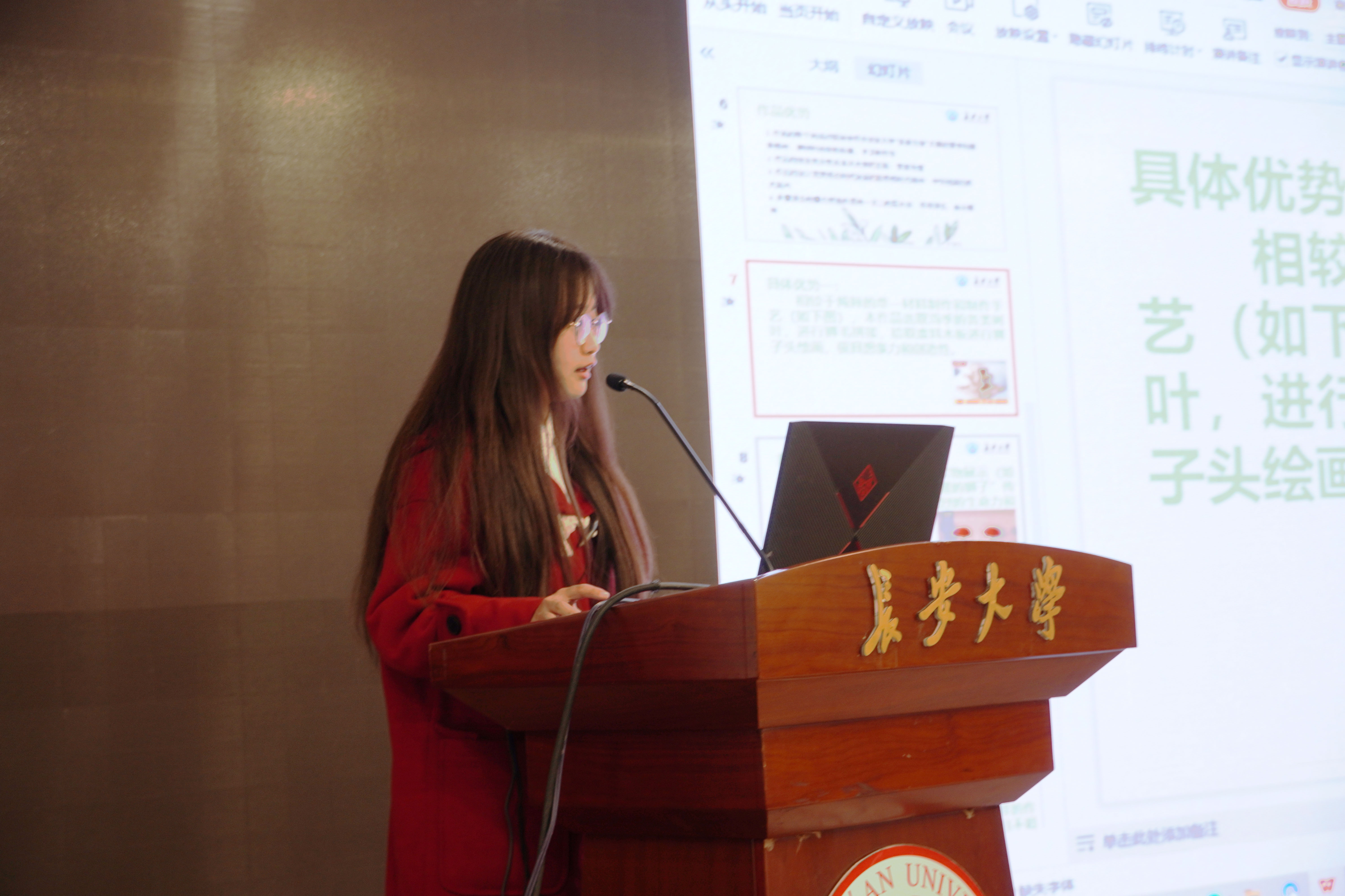 经过初赛的选拔,全校共有7支队伍晋级决赛。决赛分为参赛选手答辩、评委提问、知识竞赛等环节。比赛中,7支队伍按照抽签顺序,分别从作品的创作背景、创作过程、创作理念、寓意象征等展示讲解,评委们对选手进行提问并对作品作出点评。在最后的环保知识竞赛环节中,参赛选手们积极踊跃地抢答问题,现场气氛热烈。
