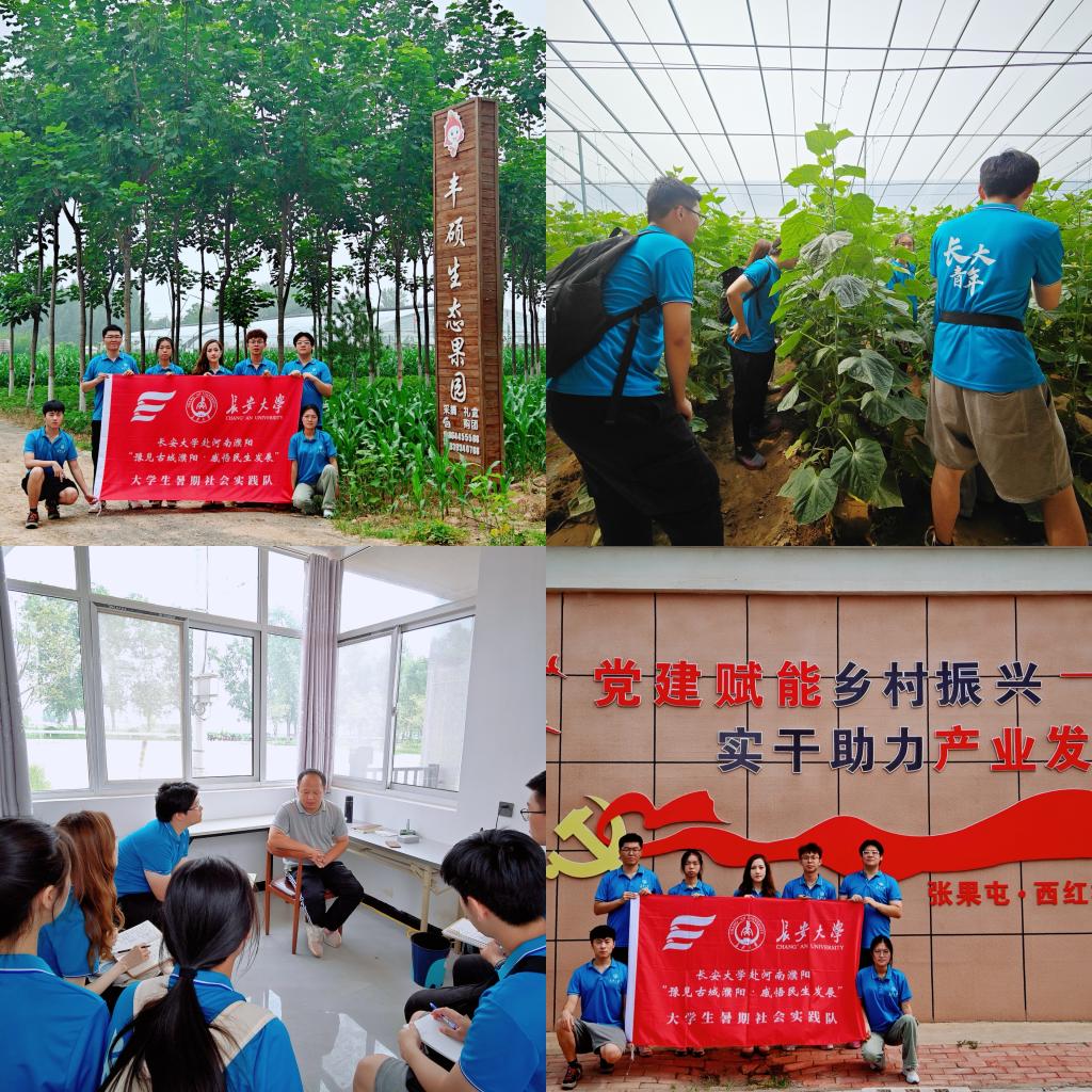 濮阳是国家重要商品粮生产基地,致力于推动转型升级,发展现代化农业,7月14-15日,实践队前往濮阳市清丰丰硕生态果园、南乐优质西红柿小镇进行实践调研。在与果园负责人的交流中,队员们掌握了更多的农业知识与实践经验,认识到农业生产与旅游观光相结合模式对产业发展的促进作用。西红柿小镇由当地政府、学校与企业三方合作建设,依托人才队伍进驻、专业技术支持及党建赋能引领,已实现创新型研发、标准化生产、先进式管理、品牌化经营,辐射周边25个贫困村。行走在温室大棚中,队员们深刻感受到弘扬实干精神才能助力农业提质增效,实现乡村振兴。