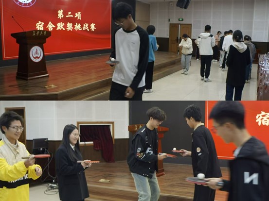 在 宿舍默契环节——“珠行万里”小游戏中,各参赛成员通过乒乓球拍将乒乓球送到指定位置,交接时乒乓球如有掉落,需重新开始,根据进球个数的高低评选“最佳默契奖”。现场参赛宿舍成员和观众们积极参与,情绪高涨,气氛热烈,肆意彰显青春活力。参赛成员用自己的行动与付出,深刻诠释了本次宿舍文化节“团结,互助,包容,个性”的鲜明主题。经过激烈角逐,17#921、17#919宿舍荣获一等奖;17#902、7#250等5个宿舍荣获二等奖;17#907、17#1005、7#251等7个宿舍荣获三等奖,17#921和17#919宿舍分别荣获“最佳人气奖”“最佳默契奖”,学院领导老师为获奖宿舍代表颁奖。