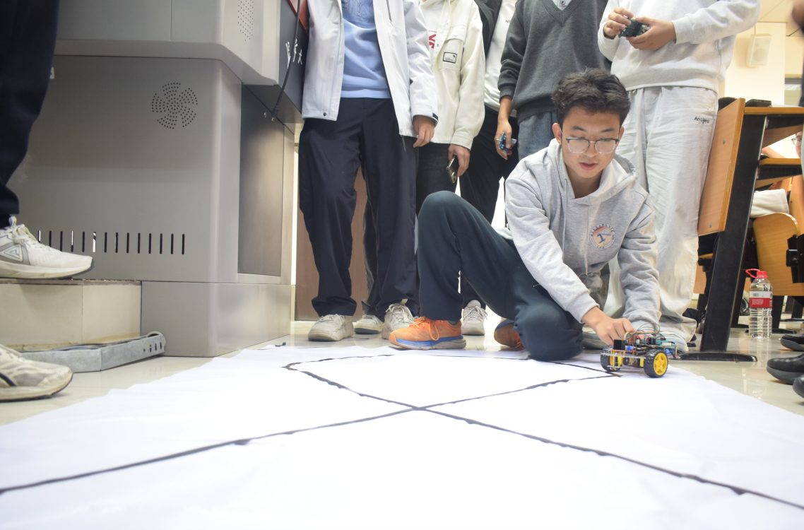 竞赛要求参赛智能小车全程沿黑色引导线行驶,跑出或偏离轨道即视为无效,最终以小车完成整个赛道的最短用时作为评判标准。赛场上,各参赛队伍全神贯注,调试参数、优化策略,小车在赛道上疾驰,展现了精湛的技术水平与默契的团队协作。现场气氛紧张热烈,充分激发了同学们的创新思维与实践热情。