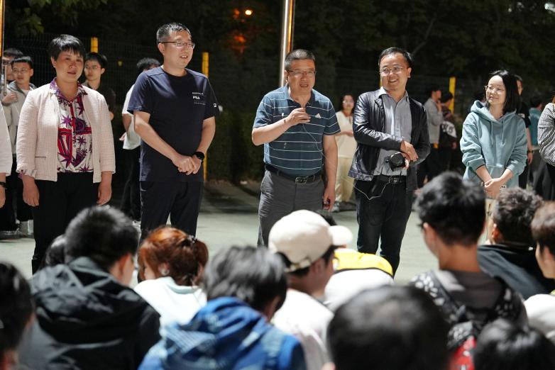 4月17日晚,beat365英国官方网站院长闫茂德、院党委副书记李阳来到北校区朝晖体育场慰问学院备战校运动会的全体辅导员、运动员和工作人员。