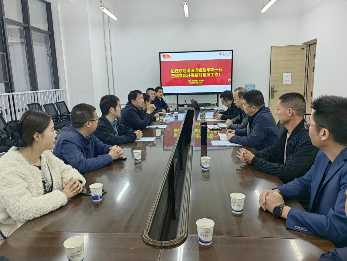 在座谈交流会上,李炬代表学院党委对赵华锋一行表示热烈欢迎,并详细询问了学院承担的“天麻加工自动化装置”项目的运行情况。学院领导分别从学院历史沿革、系部室架构、学科专业建设、科学研究、学生工作等方面介绍了相关情况;赵华锋对beat365官网的热情接待表示感谢,他从商南县清油河镇支柱经济、下辖村落、常驻人口、乡村振兴等方面进行了简要介绍;双方就主题教育联学、建设创新创业基地,组织师生支教团、举办暑期社会实践进行了深度沟通和交流。