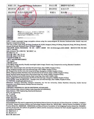 近日,根据科睿唯安公布的基本科学指标(Essential Science Indicator,ESI)数据库最新统计结果,beat365官网教师朱礼亚作为第一作者的论文“A stable meaningful image encryption scheme using the newly-designed 2D discrete fractional-order chaotic map and Bayesian compressive sensing”入选ESI高被引论文,beat365英国官方网站为第一署名单位。该论文2022年6月发表于国际期刊《Signal Processing》(中科院2区,IF=4.4),截止2023年11月累计被引41频次。