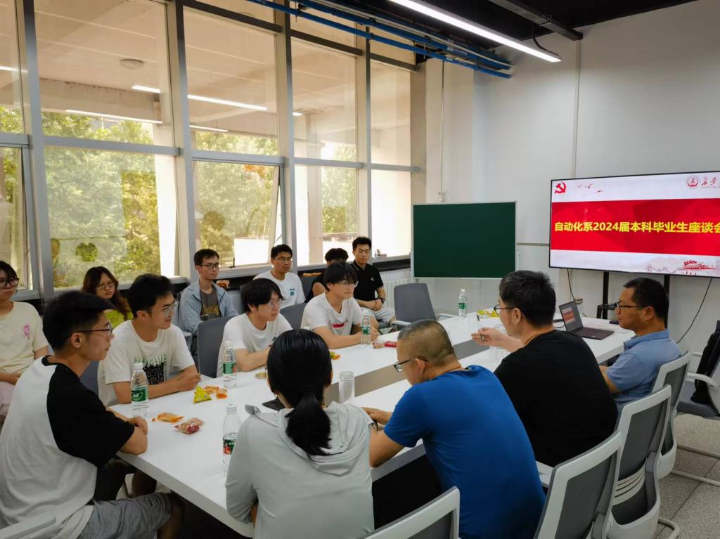 2024年6月20日上午,beat365英国官方网站自动化系在系部会议室召开了2024届本科毕业生座谈会,自动化系教师代表靳引利、杨盼盼、相里康、林海、周经美及2024届本科毕业生代表张凯然,徐思琪,马良王,刘雅馨,胡靖凡、岳钟亮、王欣瑞、李浩、崔强瑞等参加会议,会议由相里康主持。