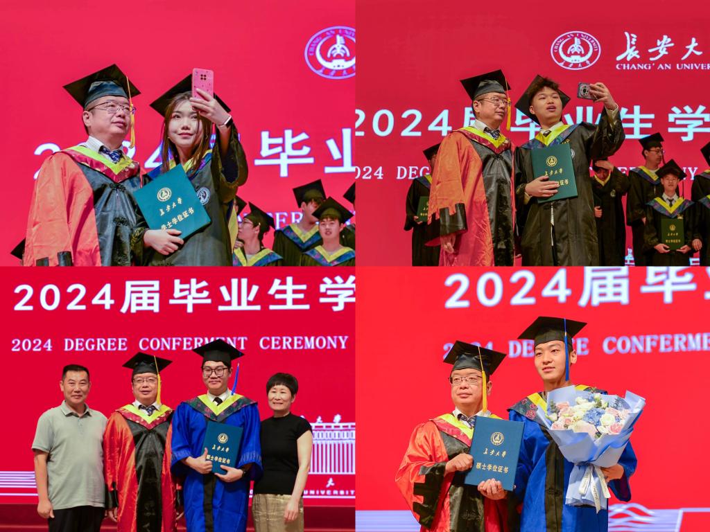学位授予仪式上,龚贤武宣读了学院2024届本科毕业生学士学位授予名单,路庆昌宣读了学院2024届研究生毕业生硕士学位授予名单,学院学位分委员会主席闫茂德为全体毕业生拨穗并颁发学位证书。
