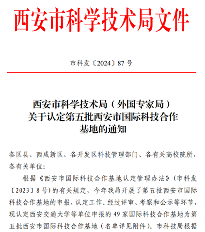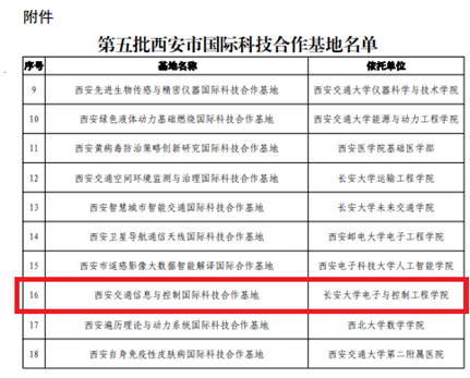 近日,西安市科学技术局(外国专家局)发布了《关于认定第五批西安市国际科技合作基地的通知》。经评审、考察和公示等环节,beat365官网惠飞教授牵头申报的交通信息与控制国际科技合作基地被认定为西安市国际科技合作基地。