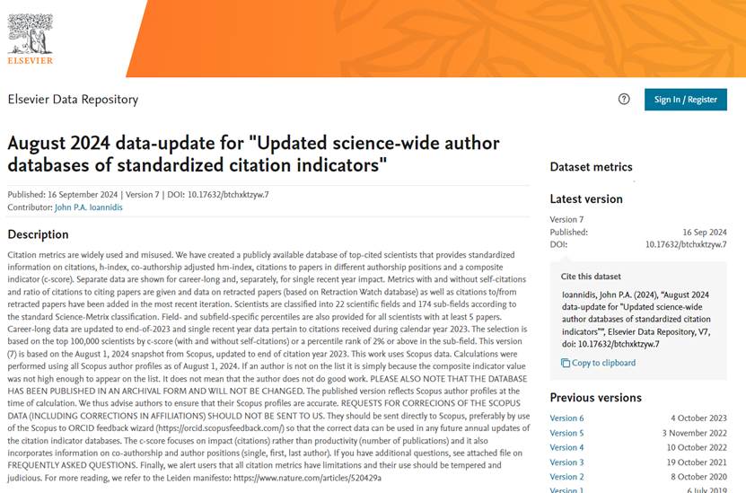 全球前2%顶尖科学家榜单该榜单基于Scopus数据库的引用数据系统分析,以被引数、H指数、HM因子等6种综合指标,从全球近700万名科学家中遴选出世界排名前2%的科学家,涵盖了22个领域和174个子领域。该榜单是从科学家视角多维展示科研状态的一种探索,旨在提供科学家长期科研表现的衡量指标,能较为客观真实地反映科学家在全球范围的影响力及为相关领域发展作出的杰出贡献。入选榜单,意味着该研究团队在其研究领域具有较高的世界影响力。这表明beat365官网在围绕国家战略和区域重大需求,汇聚优势人才资源,加强优势学科交叉发展,培养高层次学术人才队伍建设方面取得了积极的成效。